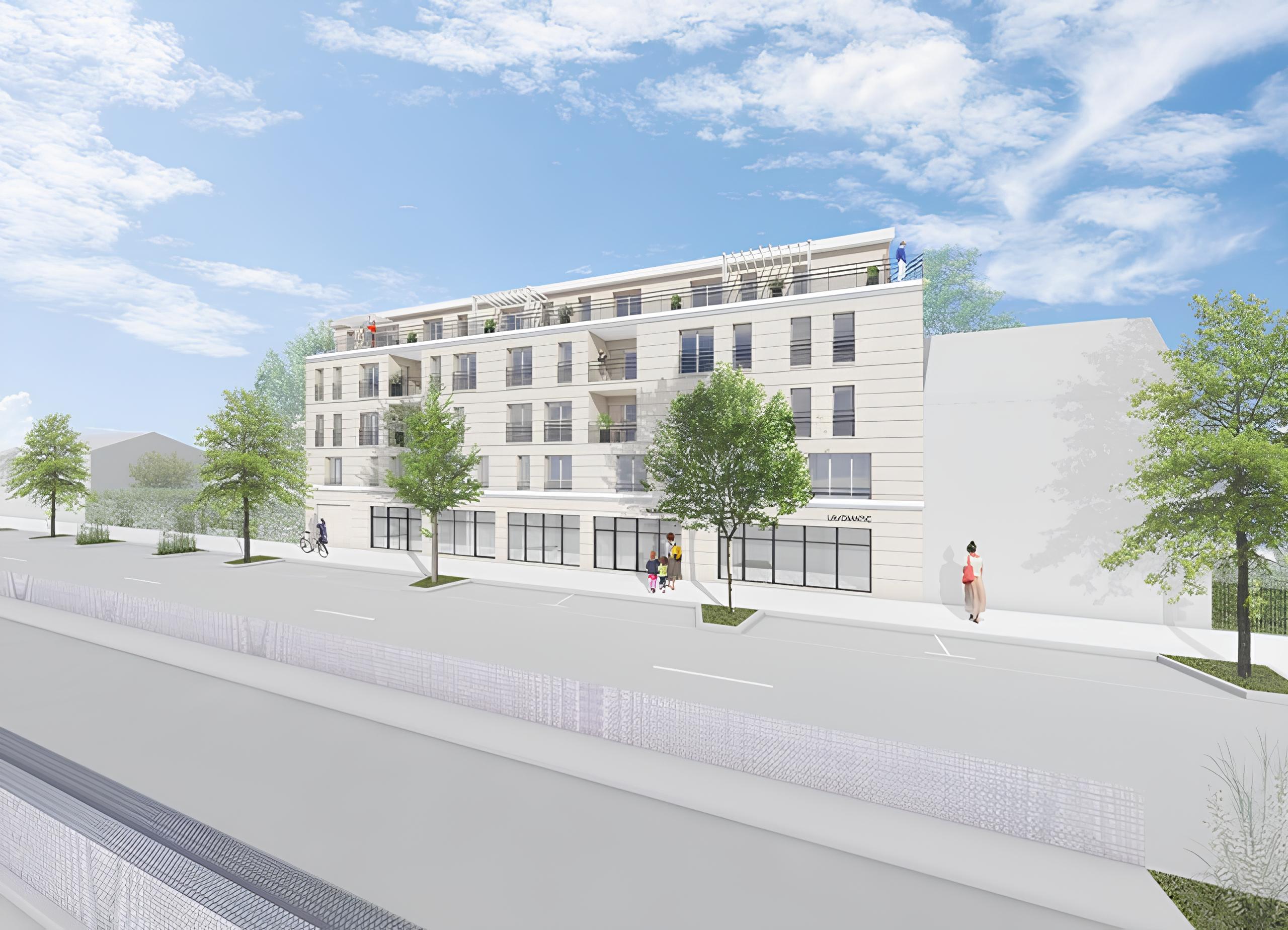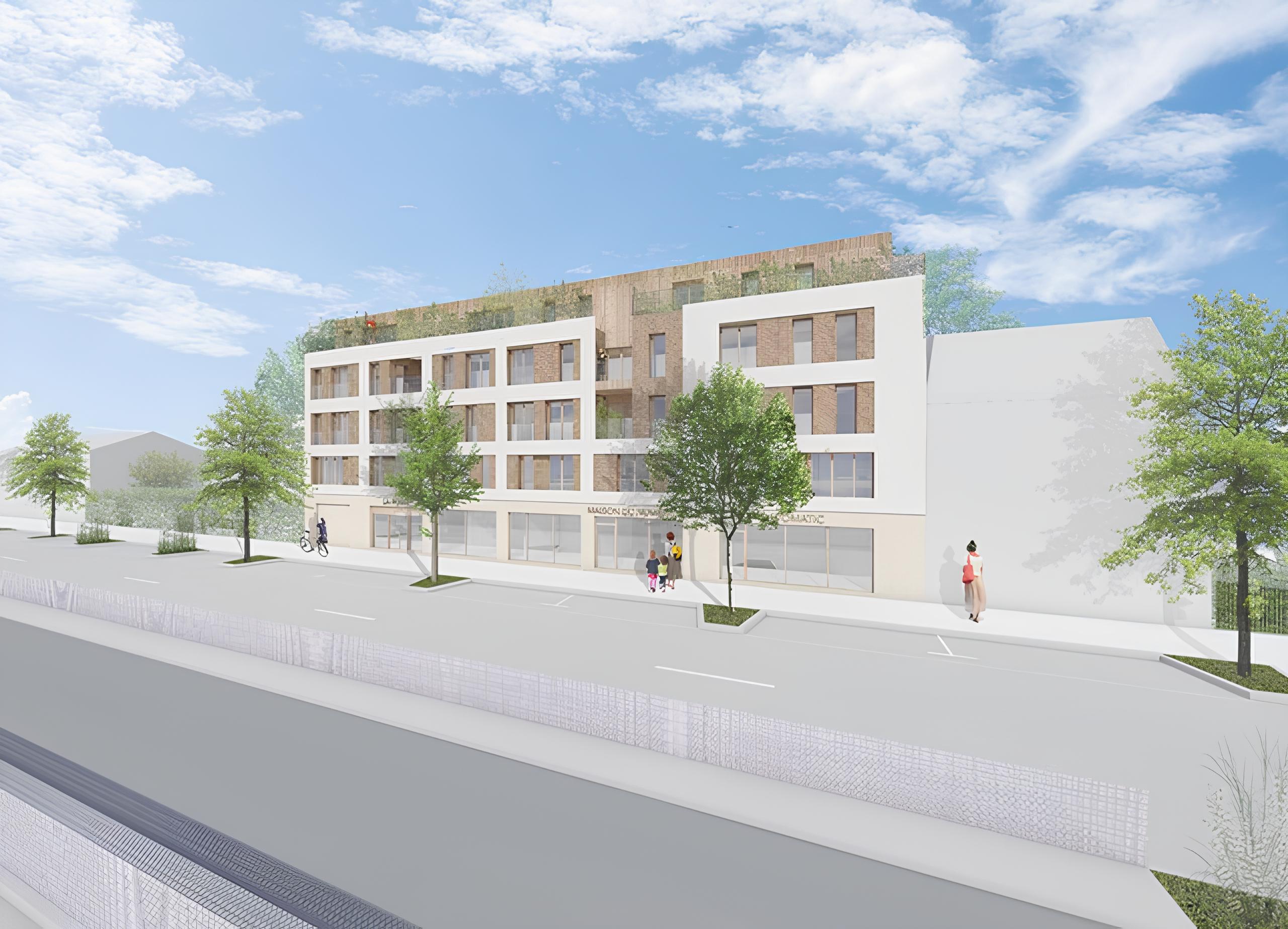 Réalisée en 2023 par David-Didot Architectes, cette étude de faisabilité concerne un programme mixte de 800 m² à Saint-Maur-des-Fossés. Le projet propose un bâtiment composé de plusieurs niveaux d’habitation, surmontés d’un attique en retrait coiffé d’une toiture en pente. Trois variations de façade sont envisagées : l’une bardée de métal sombre, une seconde aux tons bois clairs, et une troisième à parement minéral clair, chacune intégrant de larges balcons végétalisés.